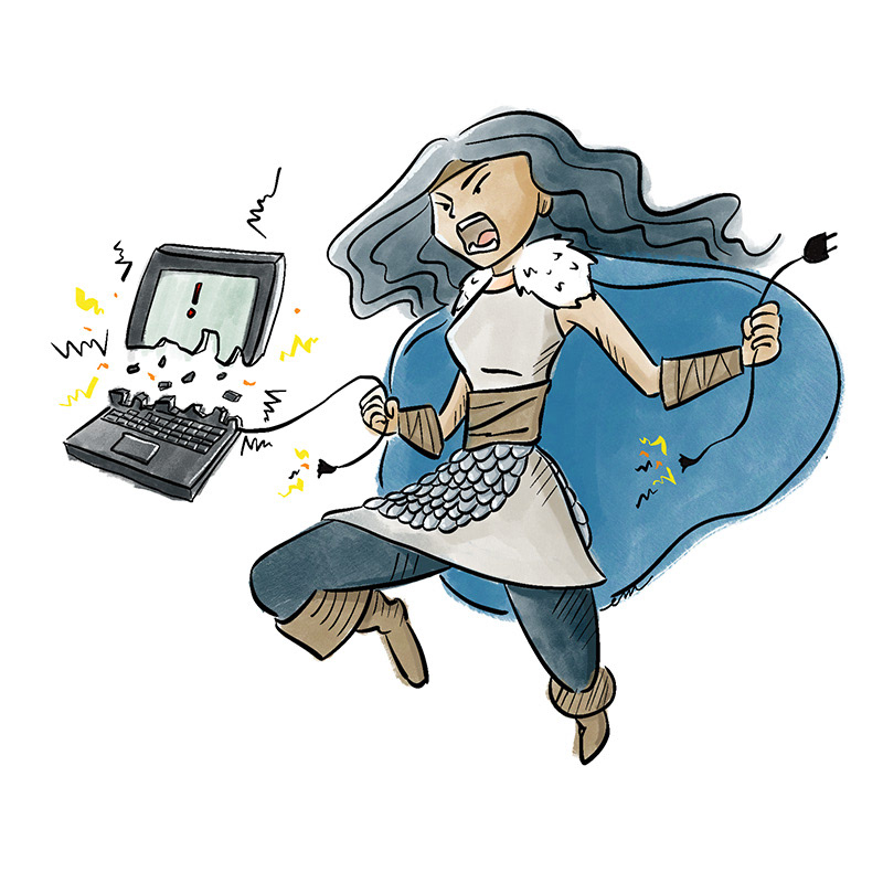 When she isn't illustrating, she's probably cooking with her kids, inventing card games, reading, or arguing with her computer.