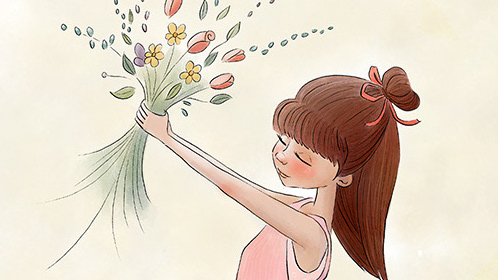 Final Illustration: The final piece was completed digitally, building on all the paper work that came before. Droplete got her sunrise sky, her moment of courage, and the wide open air waiting for her on the other side of the cloud.