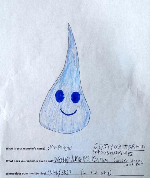 Isabella, an elementary school student, drew a smiling raindrop monster she named Droplete — who lives in the sky and eats water drops (but can't eat those). This is what happened next...